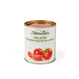 Halvtørkede cherrytomater 65 %, solsikkeolje, vann, sukker, salt, hvitløk, surhetsregulerende middel: melkesyre (E270), fersk basilikum)