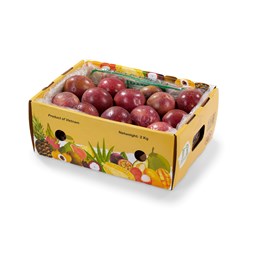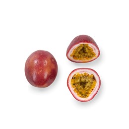 Pasjonsfrukt har en herlig, frisk og syrlig smak. Det brunlilla, bulkete skallet skjuler et gulgrønt, geléaktig fruktkjøtt med små, sorte frø. Spis fruktkjøttet med skje, eller lag en pasjonsfruktsorbet -saus. Nydelig!
