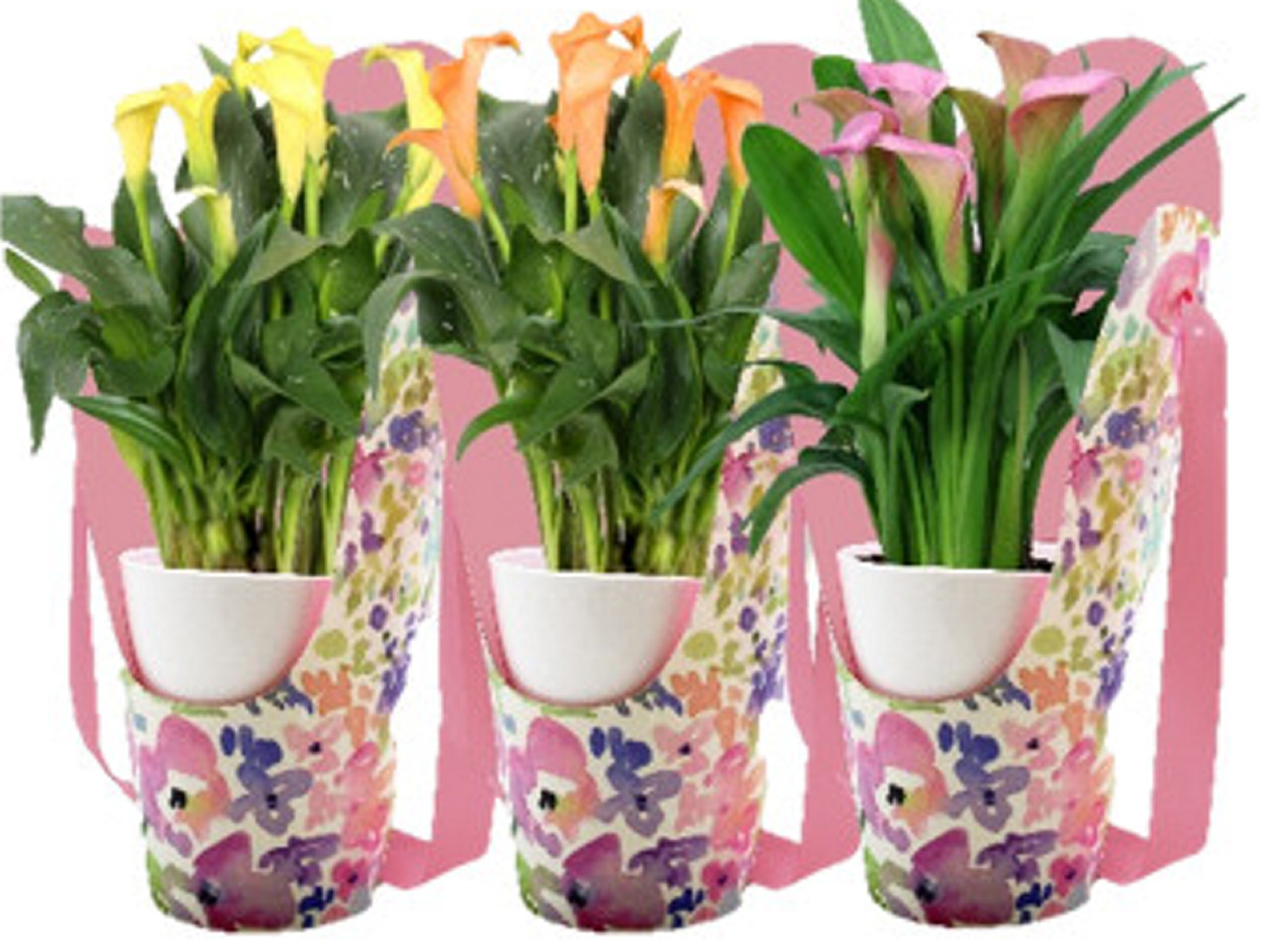 Denne perioden er det fokus på Calla i sommerlige farger med potte og bag. Enkelt grab&go produkt.