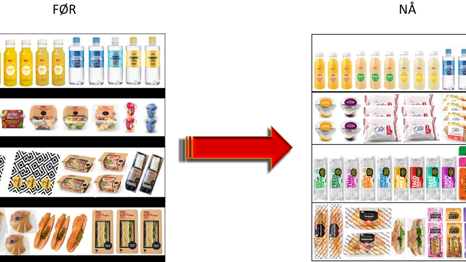 Planogram for åpen kjøl - med nytt påsmurtsortiment.