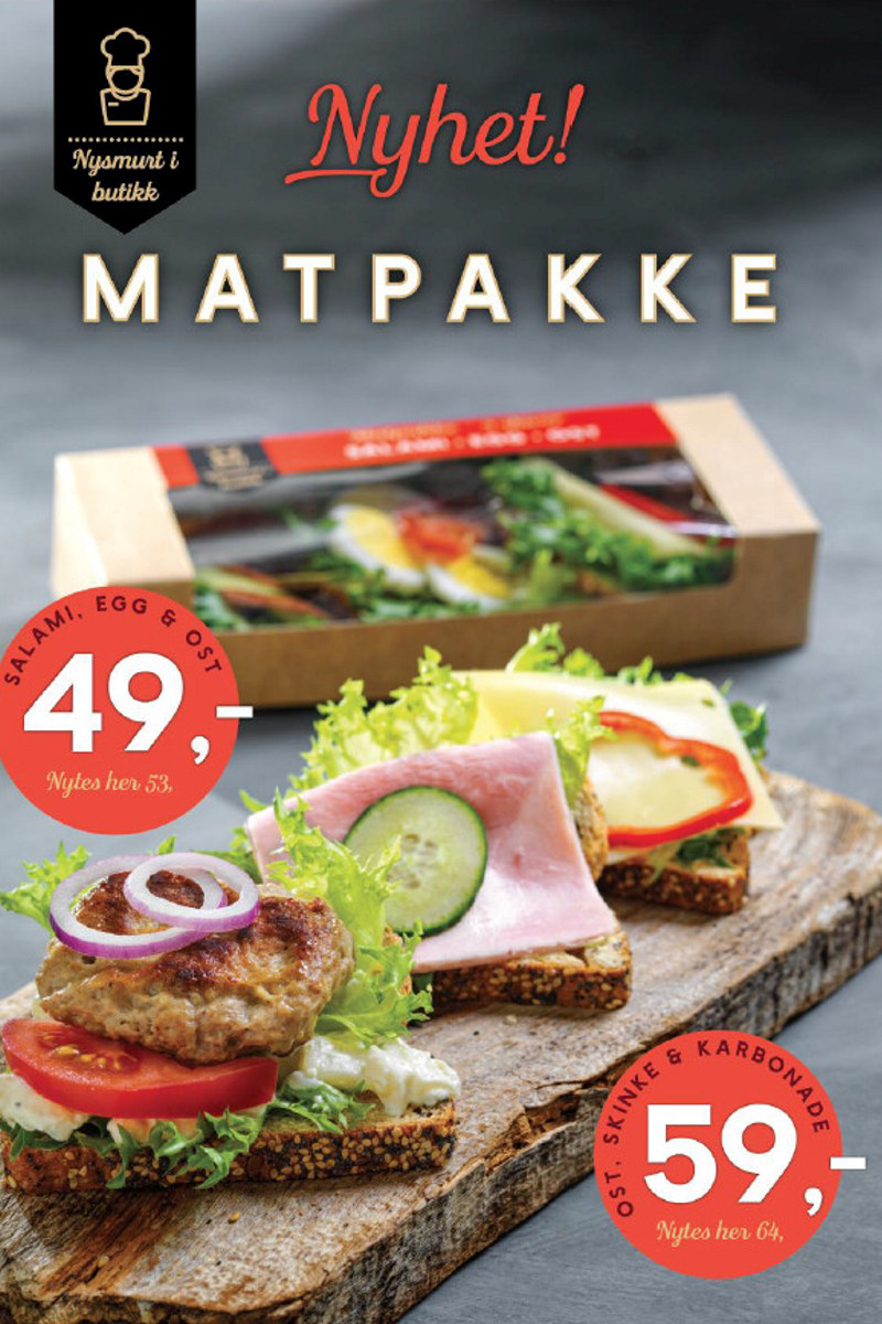 For de av dere som ikke smører matpakker selv, så har vi flere varianter ferdigsmurte matpakker i vårt sortiment.