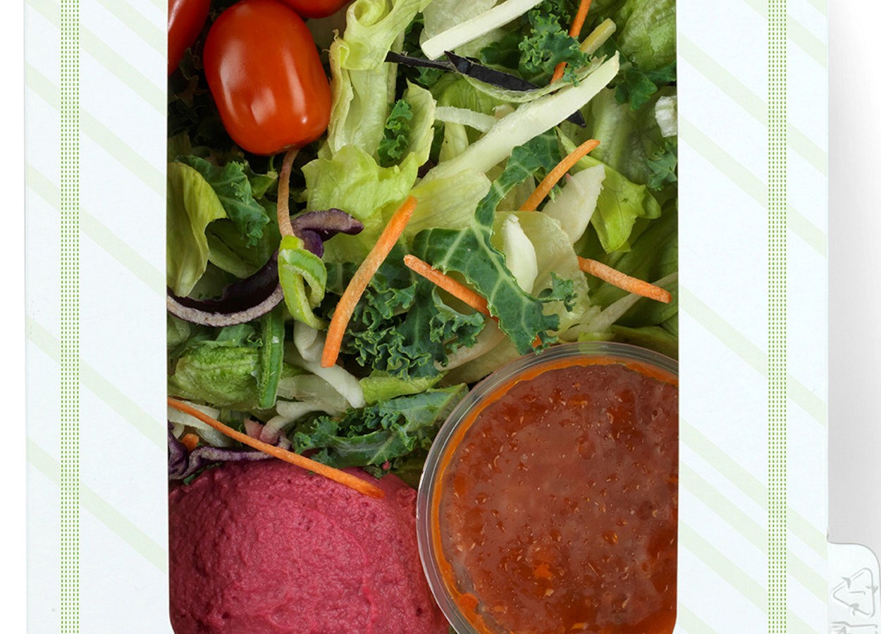 En vegansk variant, sprø salat, grønnkål, smaksrik og fyldig tabboulehblandning, kremig rødbetshummus og saftig mojo pico salsa med spennende smakskarakter.