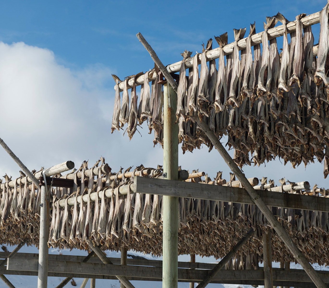 På den lille øya Værøy ytterst i Lofoten produseres nær halvparten av all lutefisk som spises i Norge. Her spiller naturen på lag, og gir et godt utgangspunkt for tørrfiskproduksjon enn andre plasser. Dette har med havet og strømmene rundt øya å gjøre. Golfstrømmen gir milde vintre og kalde vårer, som er perfekt for å produsere tørrfisk.
