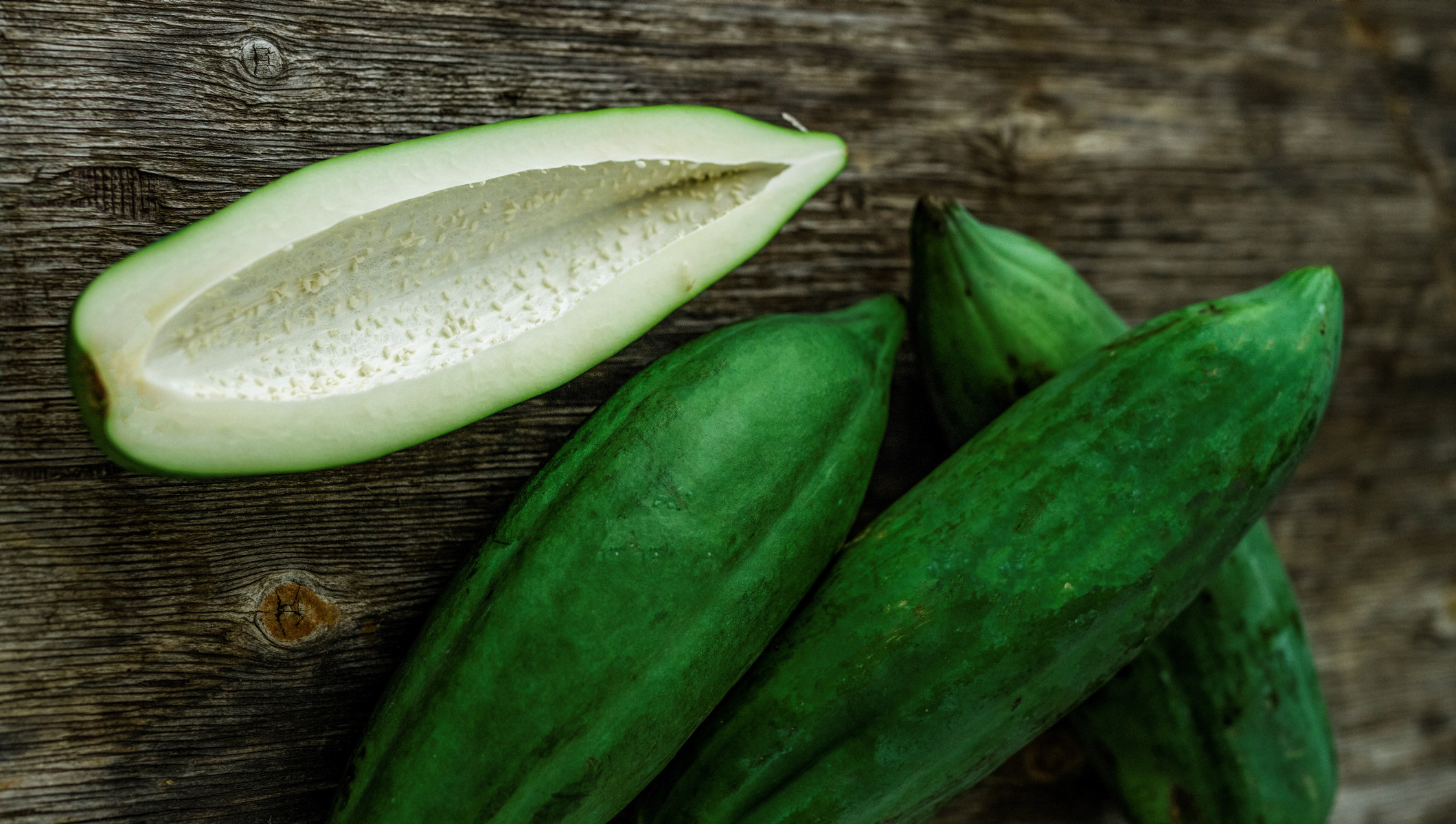 Grønn Papaya. Umodnet frukt fra Papaya-treet. Formen varierer fra avlang til mer rund. Det er et hulrom i kjernen fylt med frø. Den grønne papayen er sprø og spises som en grønnsak. Egner seg godt i salater, god med sjømat og perfekt i curry.